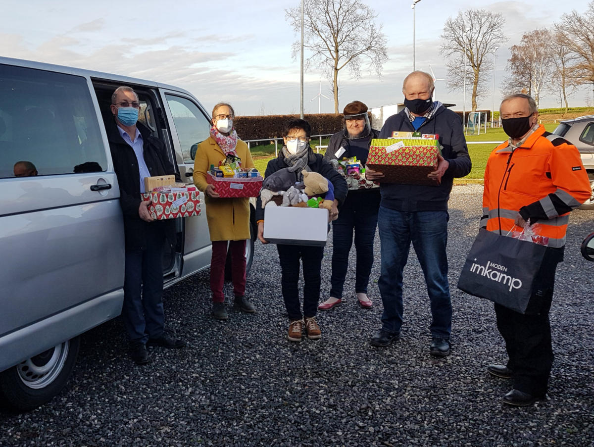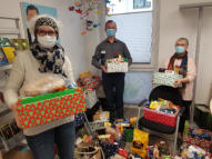 Ehrenamtliche Mitarbeiterpacken Weihnachtskistenfür die „Tafel“