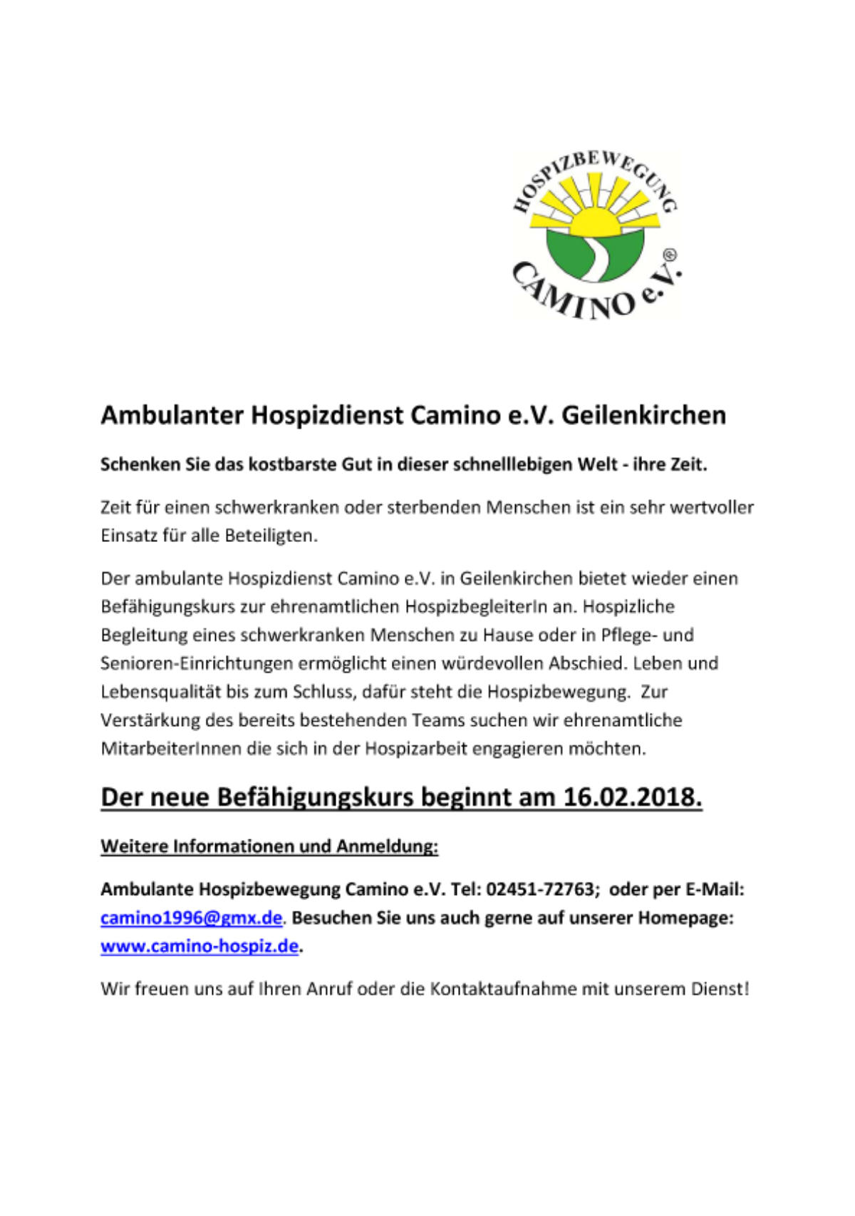 Kontakt und Trost für Sterbende und Angehörige – Ambulante Hospizbewegung Camino e.V. informiert und betreut jetzt auch per App