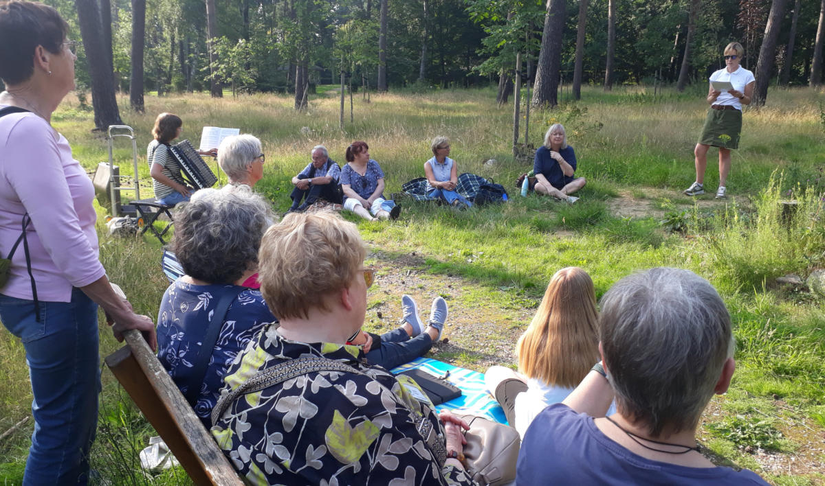 Ehrenamtler von Camino informieren sich bei Führung durch den Friedwald Bergerbos
