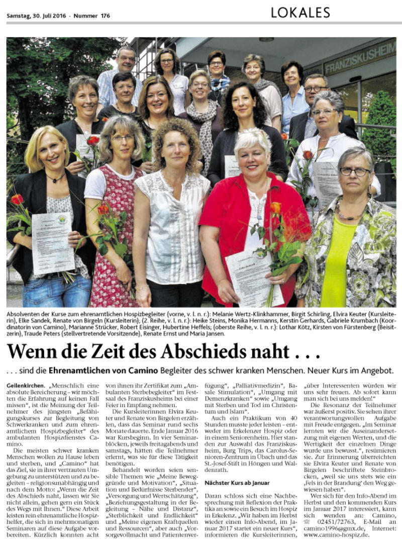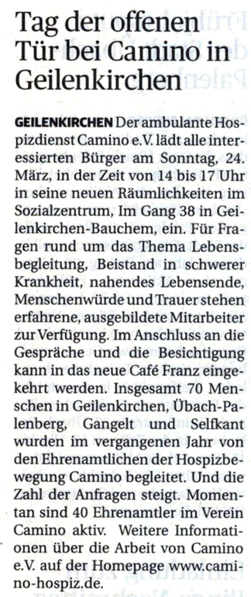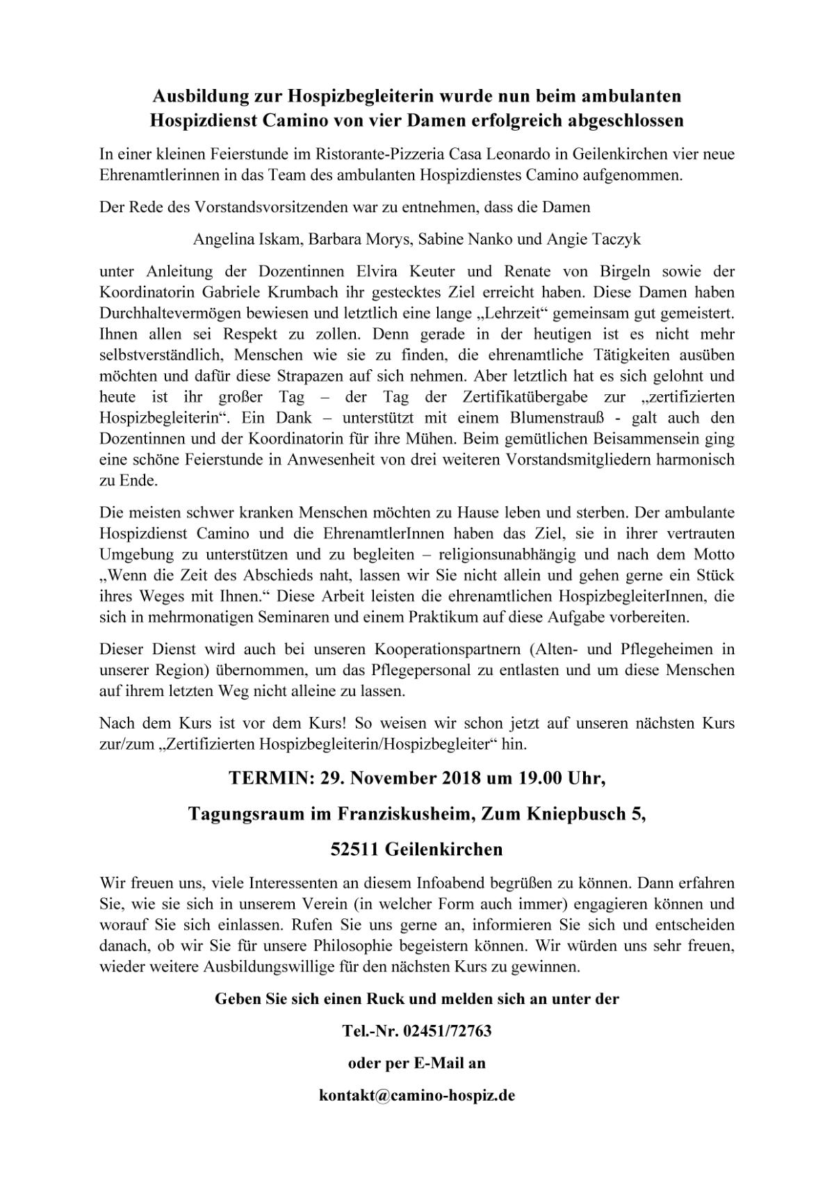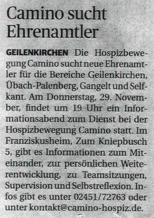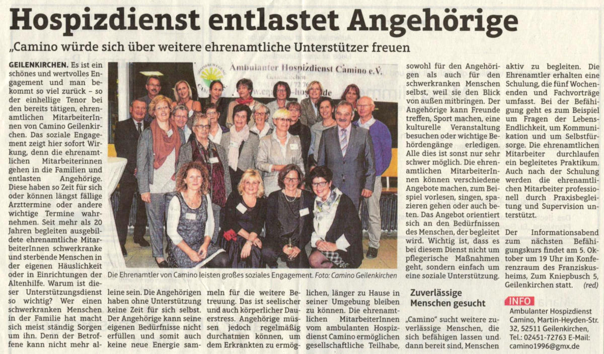 und Förderern des ambulanten Hospizdienst Camino e.V. Geilenkirchen.