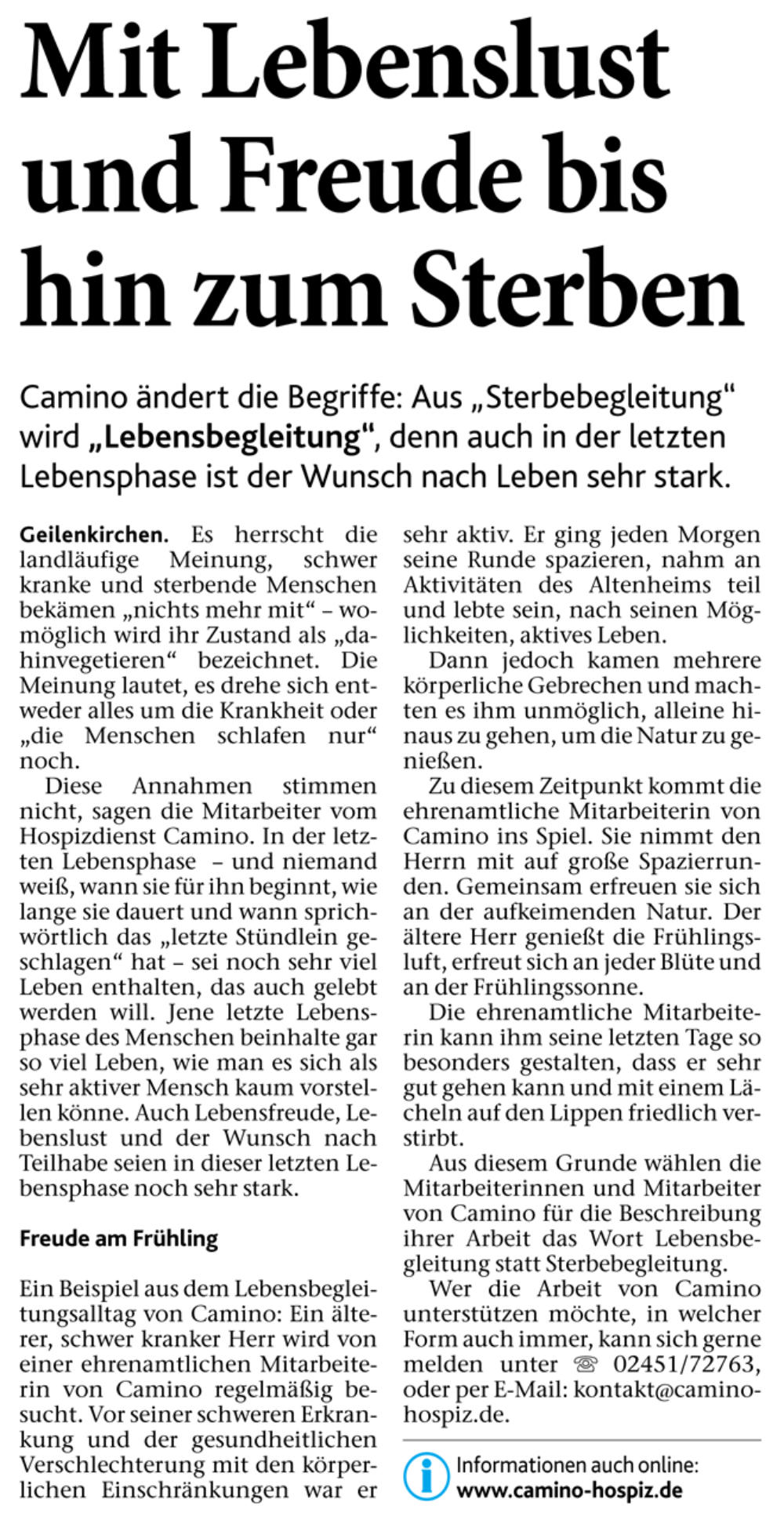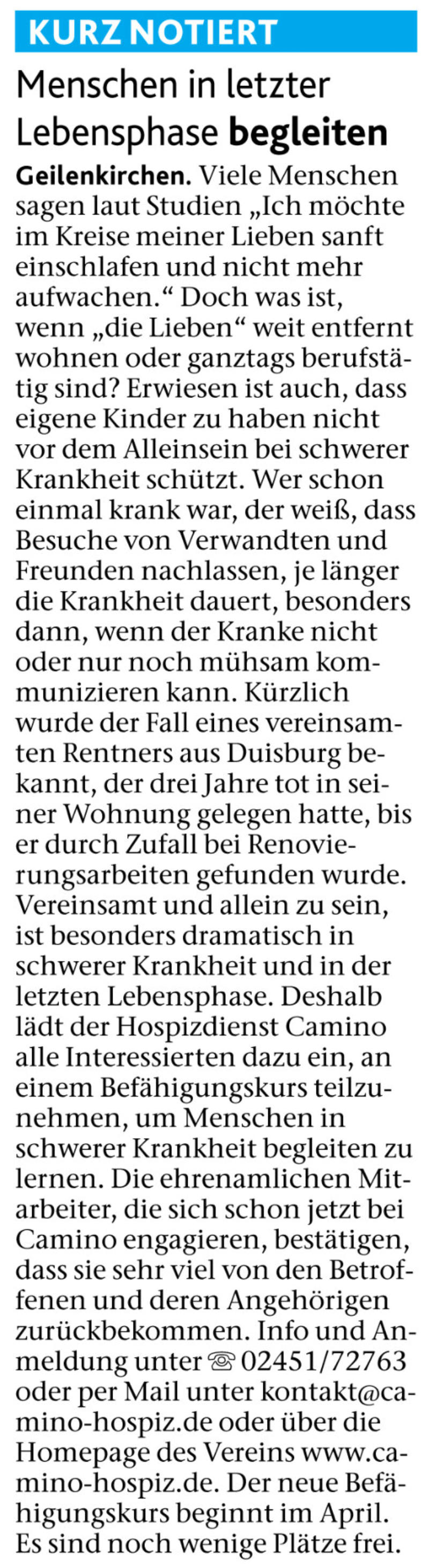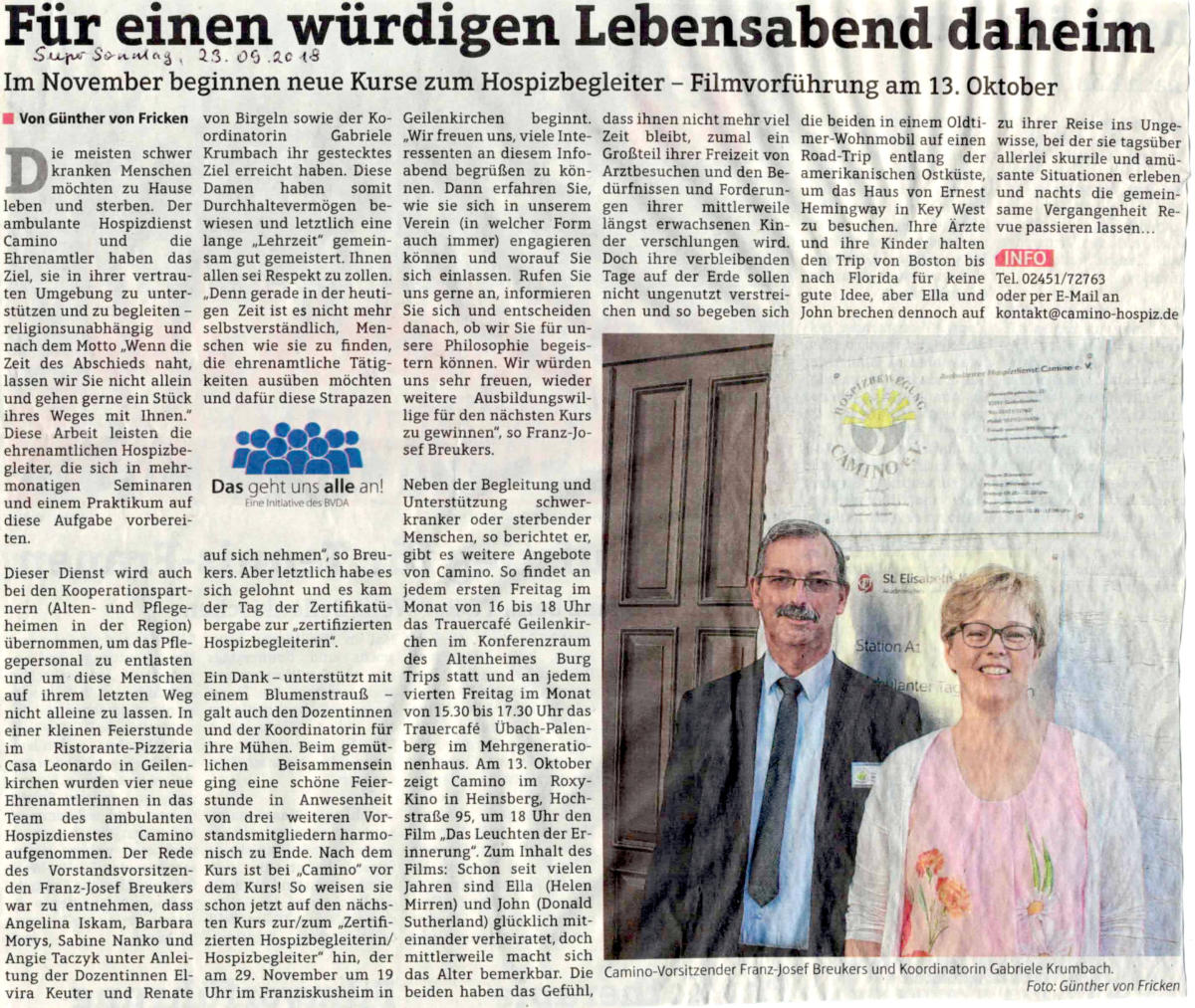 und Förderern des ambulanten Hospizdienst Camino e.V. Geilenkirchen.